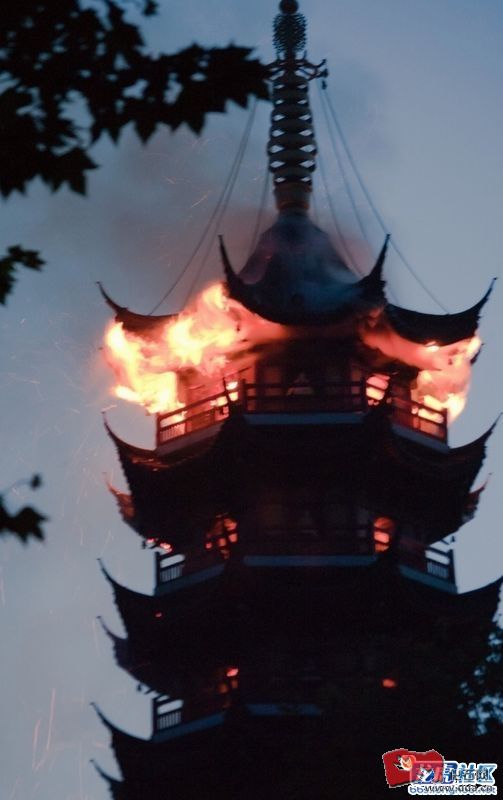 發生火災的藥師塔為1987年興建,1989年建成,塔高約44米,是雞鳴寺的標志性建筑。該塔主體為鋼筋混凝土結構,外層用木結構裝修。