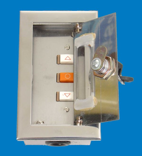 防火卷簾門控制按鈕用于防火卷簾門開閉功能,內(nèi)有上、停、下三個(gè)按鍵,分別控制卷簾門上、停、下;按鈕盒有三對(duì)常開、三對(duì)常閉觸點(diǎn),可供用戶自由選擇;面板上有玻璃窗孔,緊急狀態(tài)下,可擊碎玻璃,啟動(dòng)卷簾門。