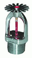快速響應(yīng)下垂型噴頭是由噴頭框架、溫感元件、密封件、濺水盤(pán)等組成,其中噴頭框架是采用銅合金材質(zhì)的精密鍛壓、外表層進(jìn)行鍍鉻拋光的制造工藝,使其具有框架強(qiáng)度高、耐腐蝕性強(qiáng)、外觀精美的特點(diǎn)。溫感元件(玻璃球)具有動(dòng)作可靠,反應(yīng)速度快。密封件具有抗老化、耐腐蝕、密封性好的性能特點(diǎn)。快速響應(yīng)下垂型噴頭向下噴灑的水量為80%~100%。玻璃球的直徑為3mm[RTI≤50(m·s)0.5]。依據(jù)玻璃球動(dòng)作的溫度不同而分為多種溫級(jí)噴